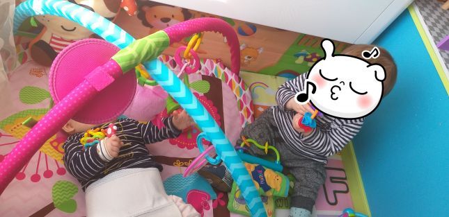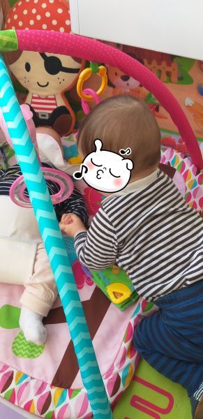 Même petit Kenzo a très bien joué à ses cotes , lui a prêter son jouet préféré , par contre de qu'elle était dans mes bras il voulait être aussi
