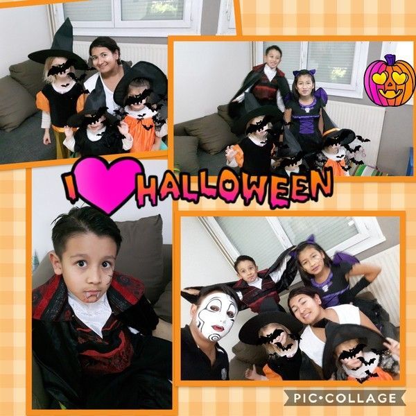 On a fête Halloween avec les enfants, nounou a eu 3 petites et belles sorcières, un vampire trop beau et une très belle chauve-souris et en plus un chéri avec une masque qui faisait pas trop peur (en tout cas les enfants se sont marré quand il a sorti avec ça) et nounou à était punie cette année et sa livraison avec son déguisement ne toujours pas arrivé :(